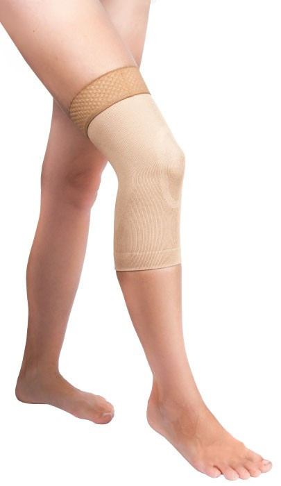 Bezlateksowa opaska kompresyjna do wzmocnienia kolana w terapii pooperacyjnej i pourazowej.