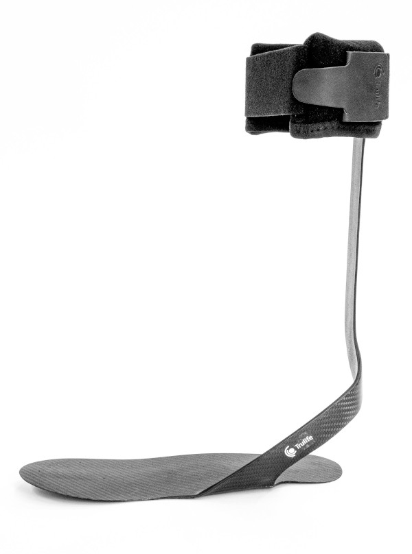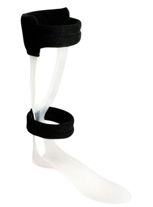 Dynamiczna orteza korygująca zgięcie grzbietowe stopy, ułatwia fazę przenoszenia.