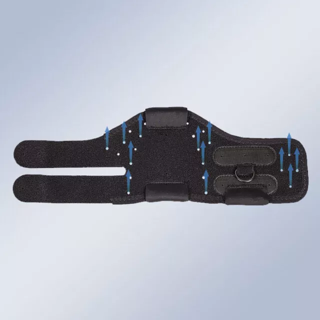 Kompresyjny stabilizator z regulowanym zapięciem na rzep.