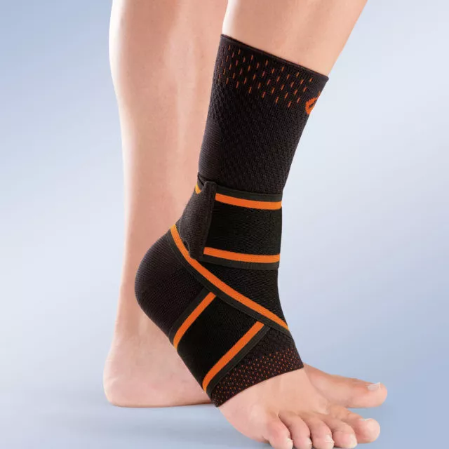Stabilizator kostki z anatomicznymi wzmocnieniami i regulacją paskami dla codziennej ochrony i podczas chodzenia.