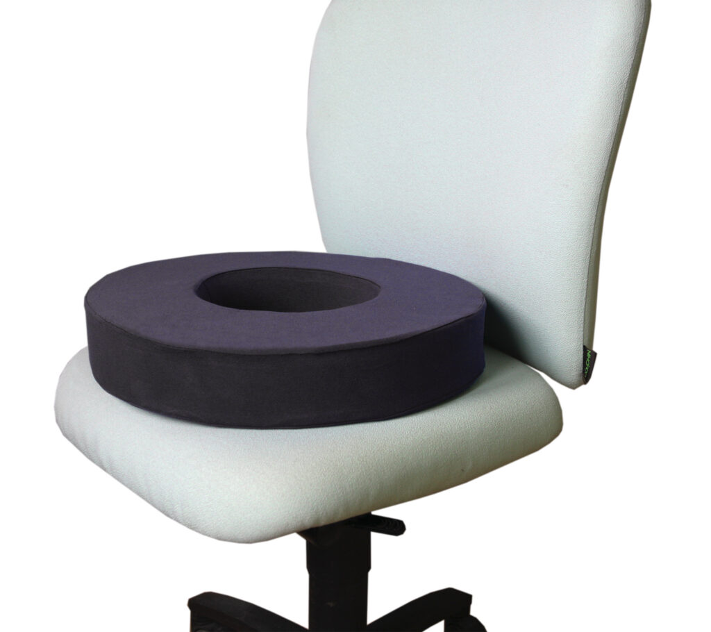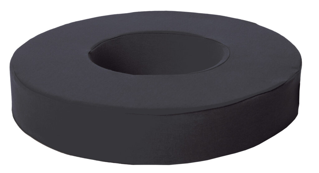 Otwór w środku krążka zapewnia stały dostęp powietrza do zagrożonej odleżynami powierzchni skóry.