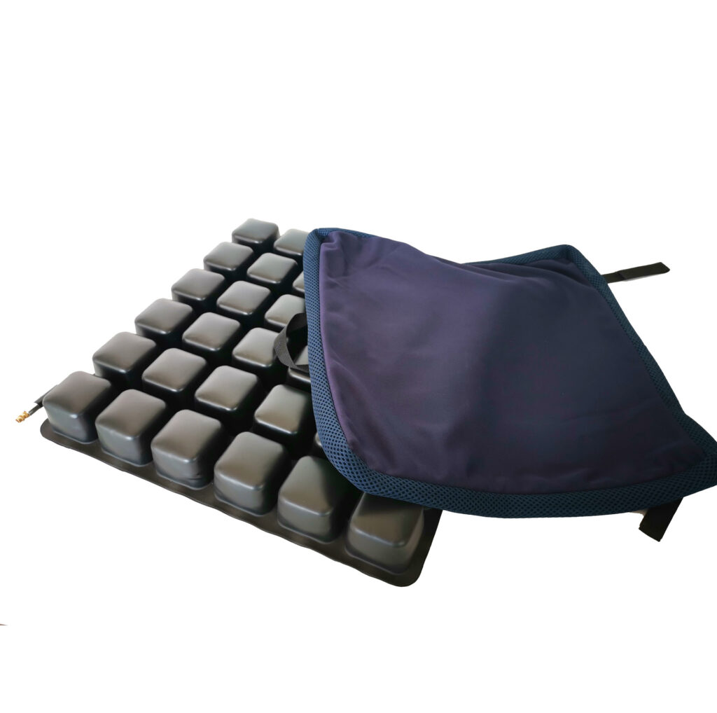 Przeciwodleżynowa poduszka odciążająca, zaprojektowana dla pacjentów spędzających w pozycji siedzącej ponad 15 godzin dziennie, ze średnim i wysokim ryzykiem powstania odleżyn, stosowana w ich profilaktyce i leczeniu w celu zmniejszenia nacisku na tkanki miękkie. 92_a47ede-1f> |