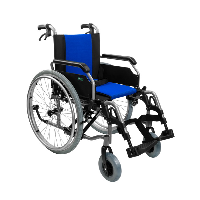 Lekki wózek aluminiowy o wysokiej zwrotności; korzystny do aktywniejszego użytkowania.