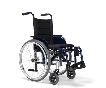 Aktywny, składany wózek ze stopów lekkich (rama trójkątna) — bardzo lekki i konfigurowalny, także w rozmiarach dziecięcych.